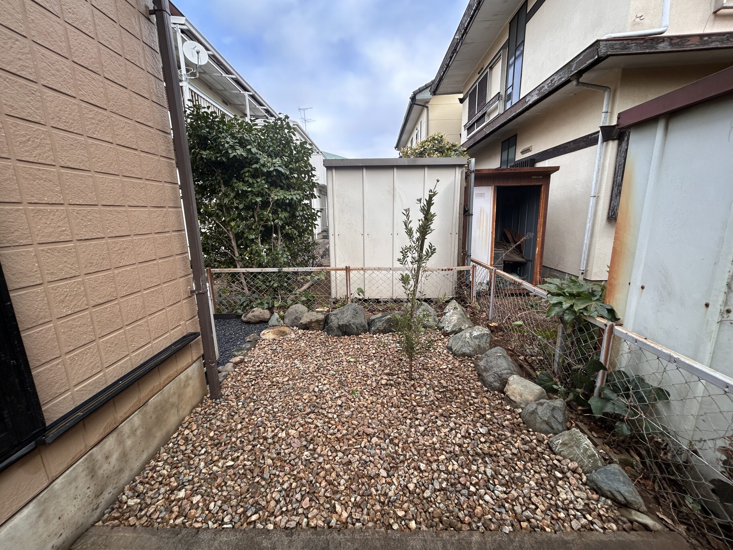 お庭づくり 雑草ストレスから解放! スッキリと整い、花が映える庭 2026.01.28 Before After Before After 家の周りが土の部分が多く、雑草の処理に長年困っていたお客さまからのご依頼でした。 家周りはシンプルな砂利と化粧砂利で管理を楽に。 ポイントにブラシノキとフェイジョアを植えて花の楽しめる庭へと変化しました。 Share 前へ 一覧にもどる