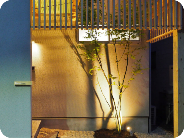 自宅のシンボルツリーとして「ライティングも相まって格好良さが際立つ」と喜んでいただいております。